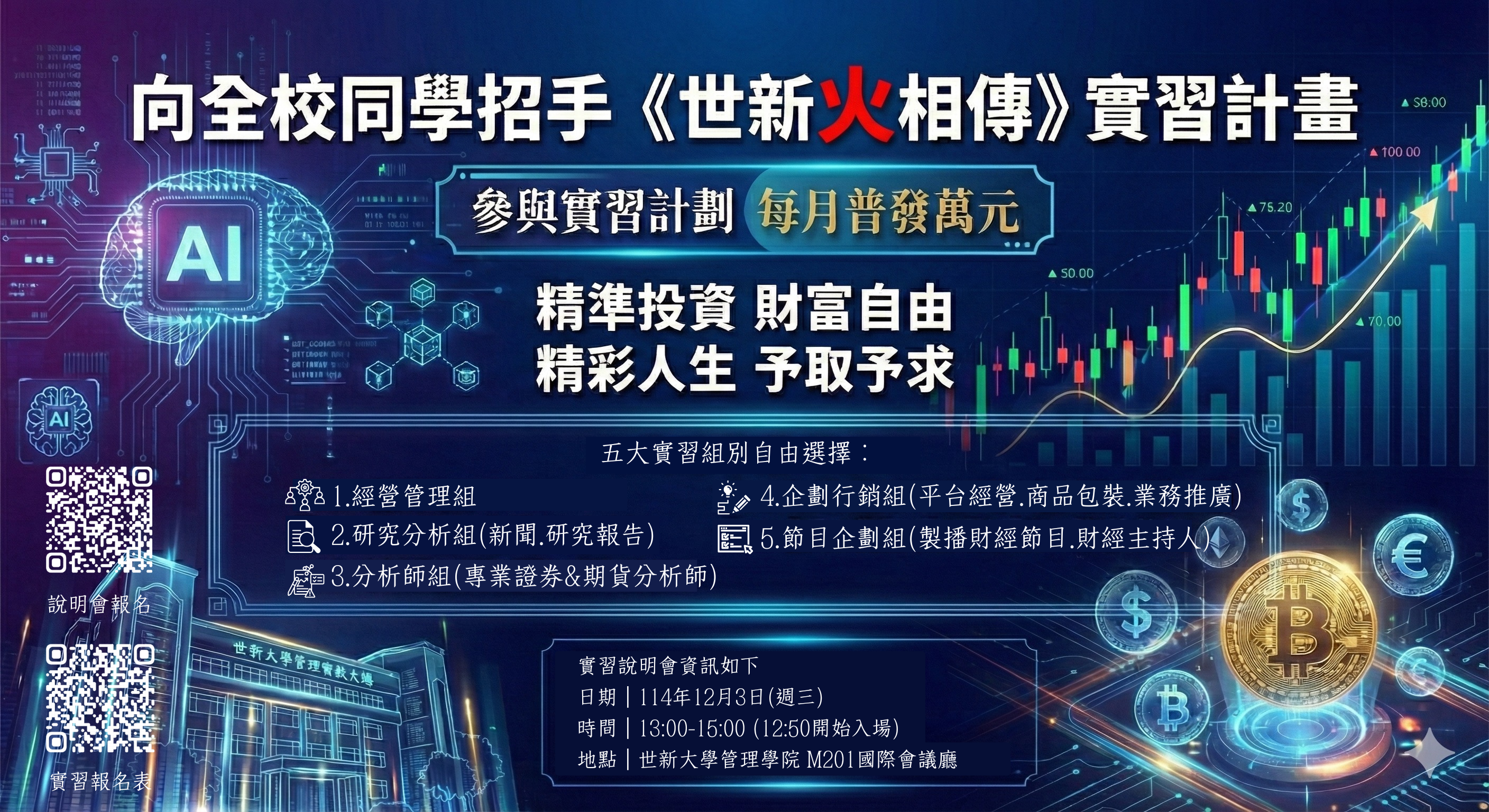 🎙️給傳播學院的你|跨出去,職涯可能更大! 🔥《世新火相傳》實習計畫說明會來了! 不論你主修傳播領域哪一個學門 …