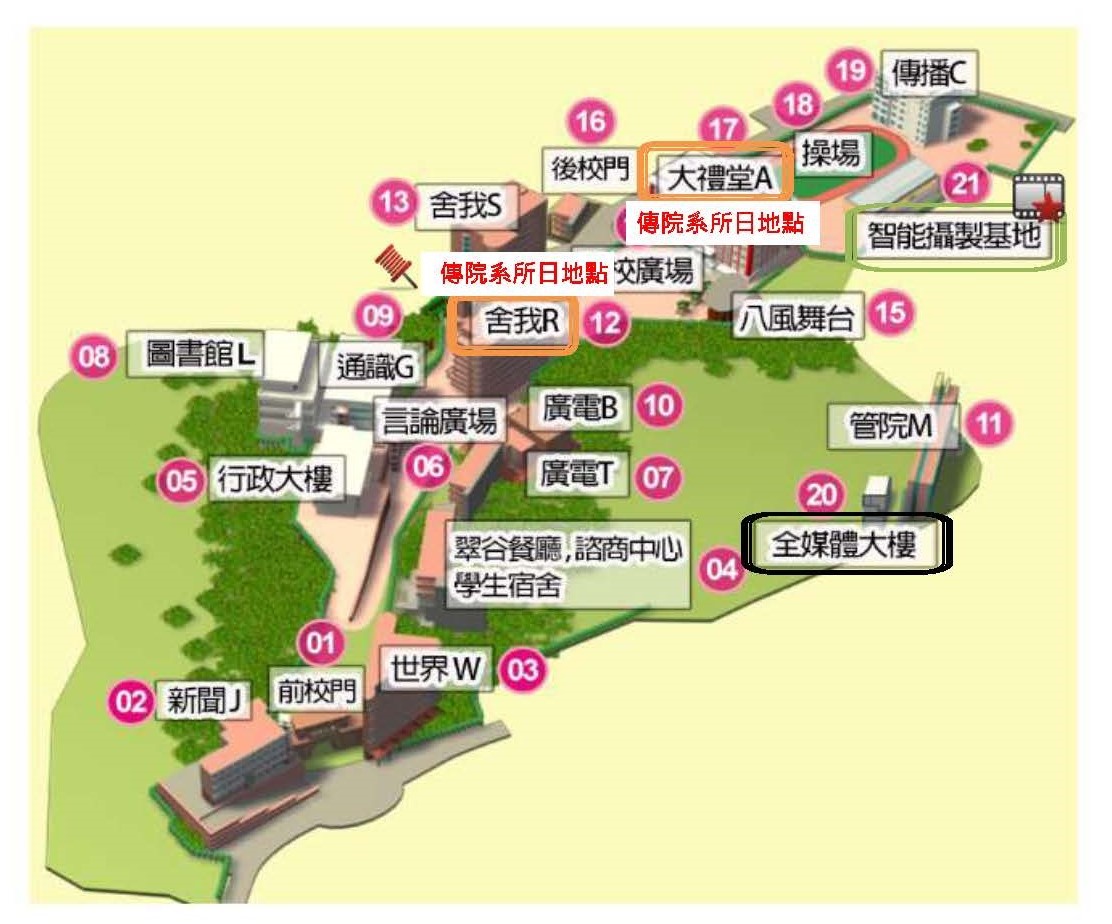 《17》大禮堂代號 A 傳院各系所日活動地點